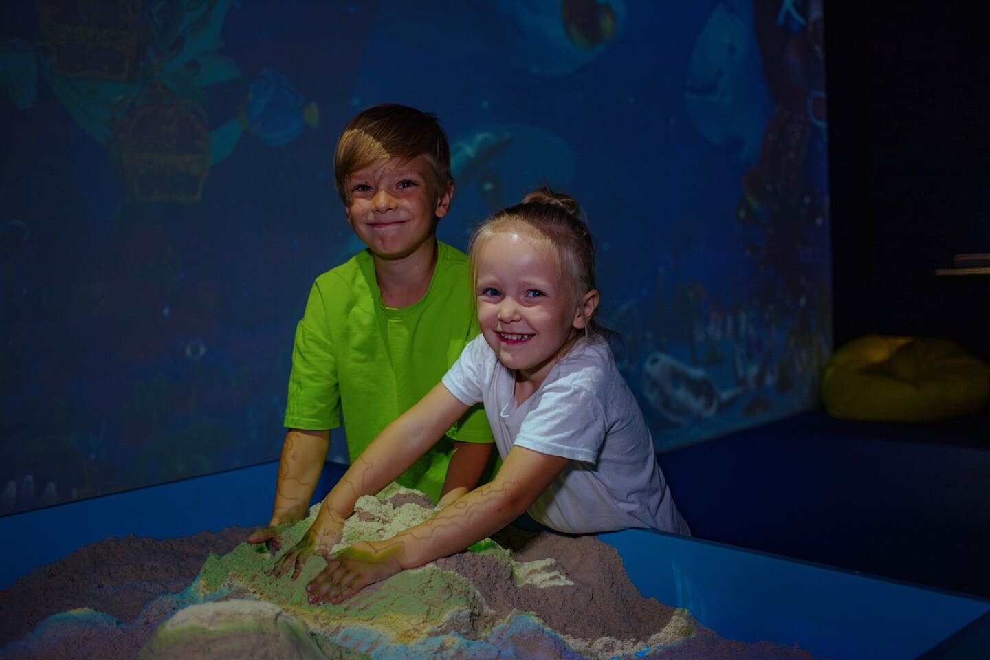 Казалось бы, привычные детские игры… Но дополненные красочными проекциями и передовыми технологиями. Работа с кинетическим песком, создание персонажей, которые оживают на экранах – все это развивает творческие способности и креативность.